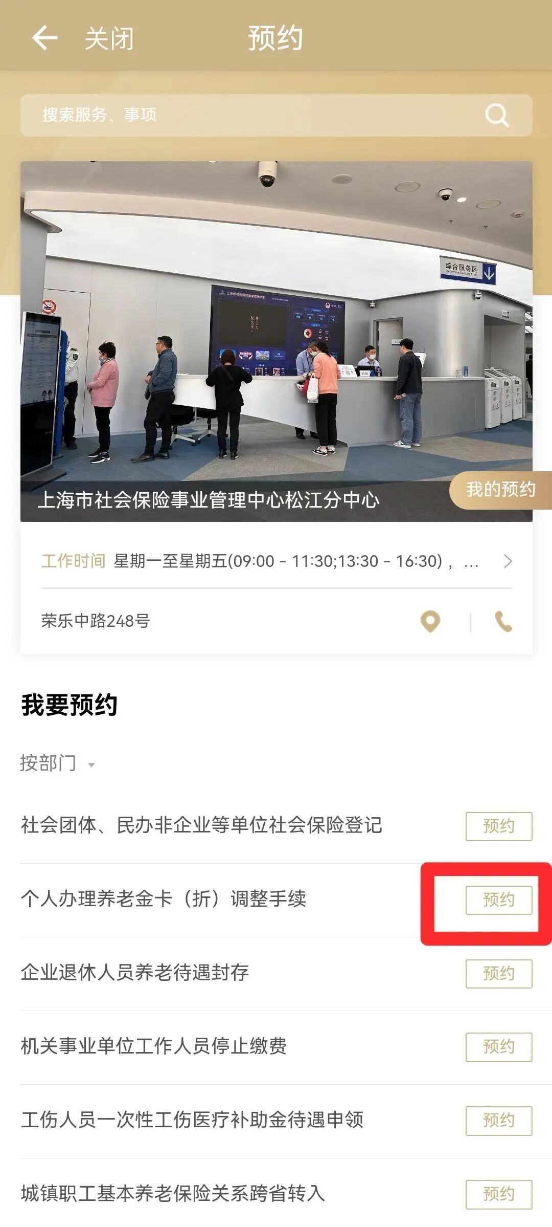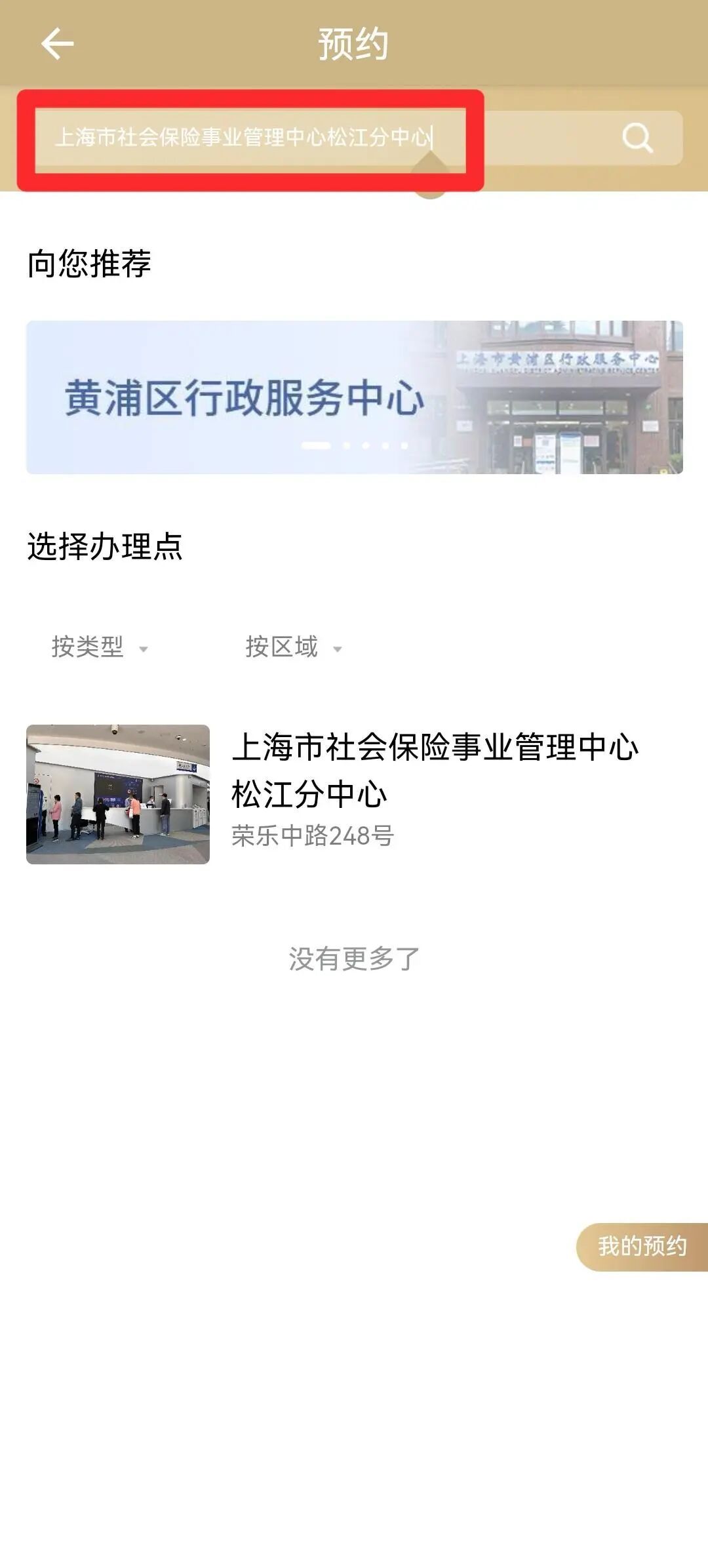 您可以在搜索栏直接输入办理点,例如:在搜索框里输入“上海市社会保险事业管理中心松江分中心”,点击搜索,选择对应的办理点。