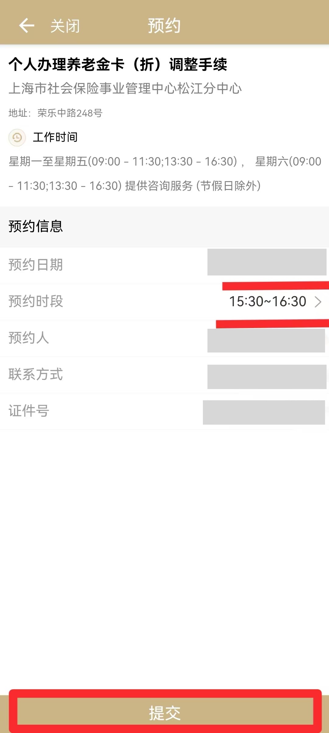 填写预约日期、预约时段,点击“提交”。这样就预约成功了!