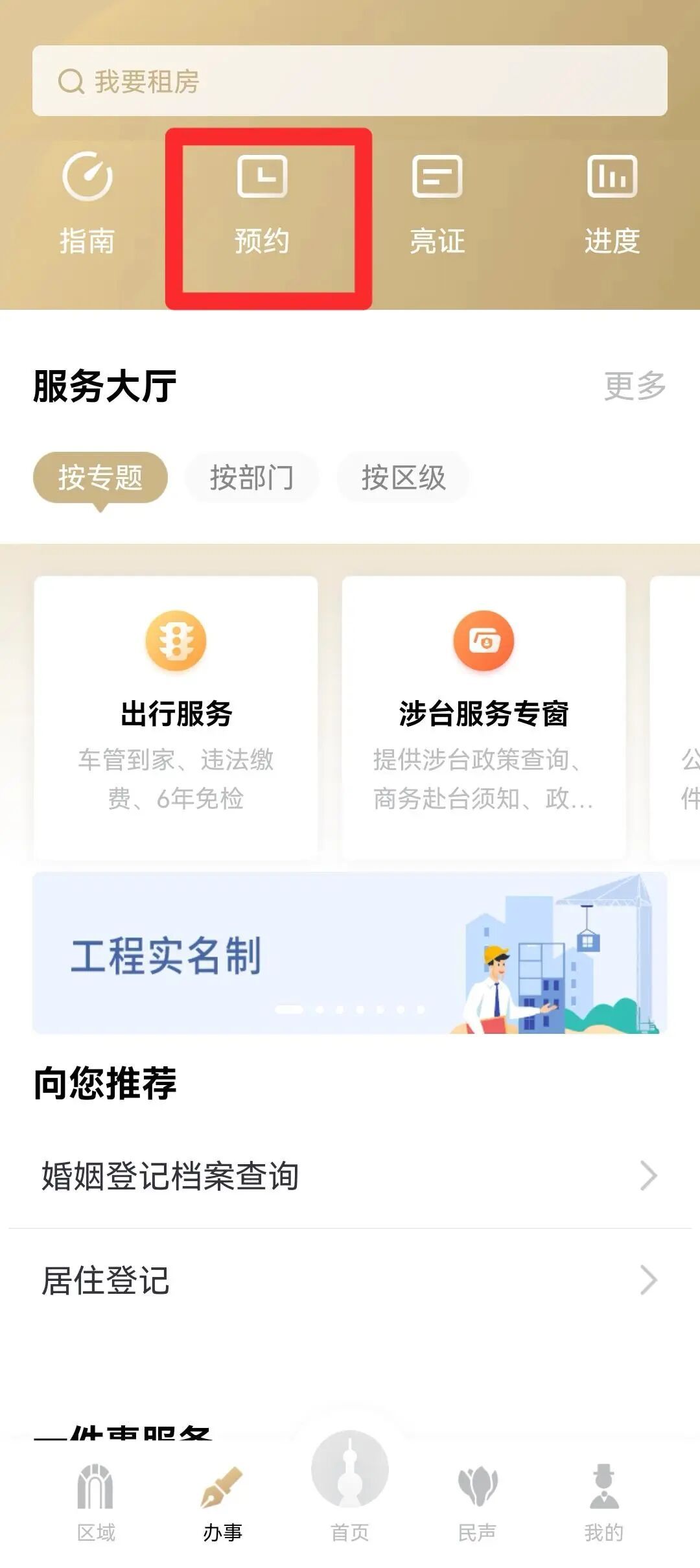 在“我要预约”中选择需要预约办理的业务,点击“预约”。