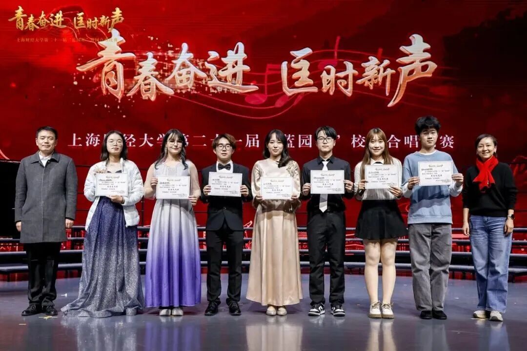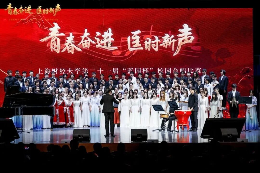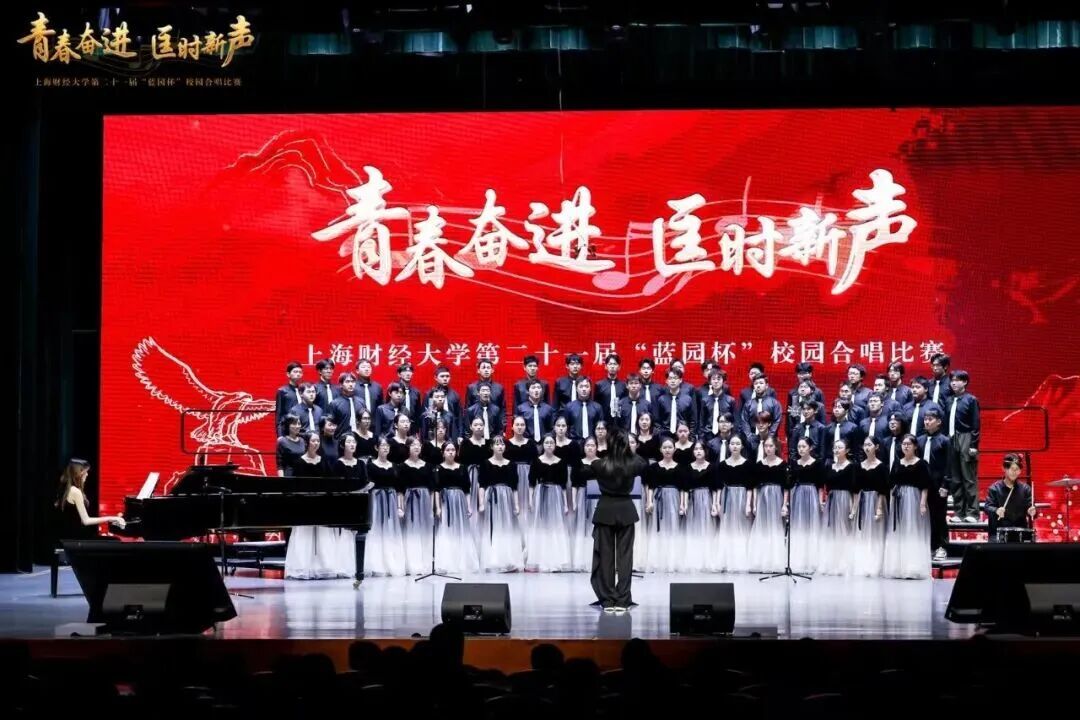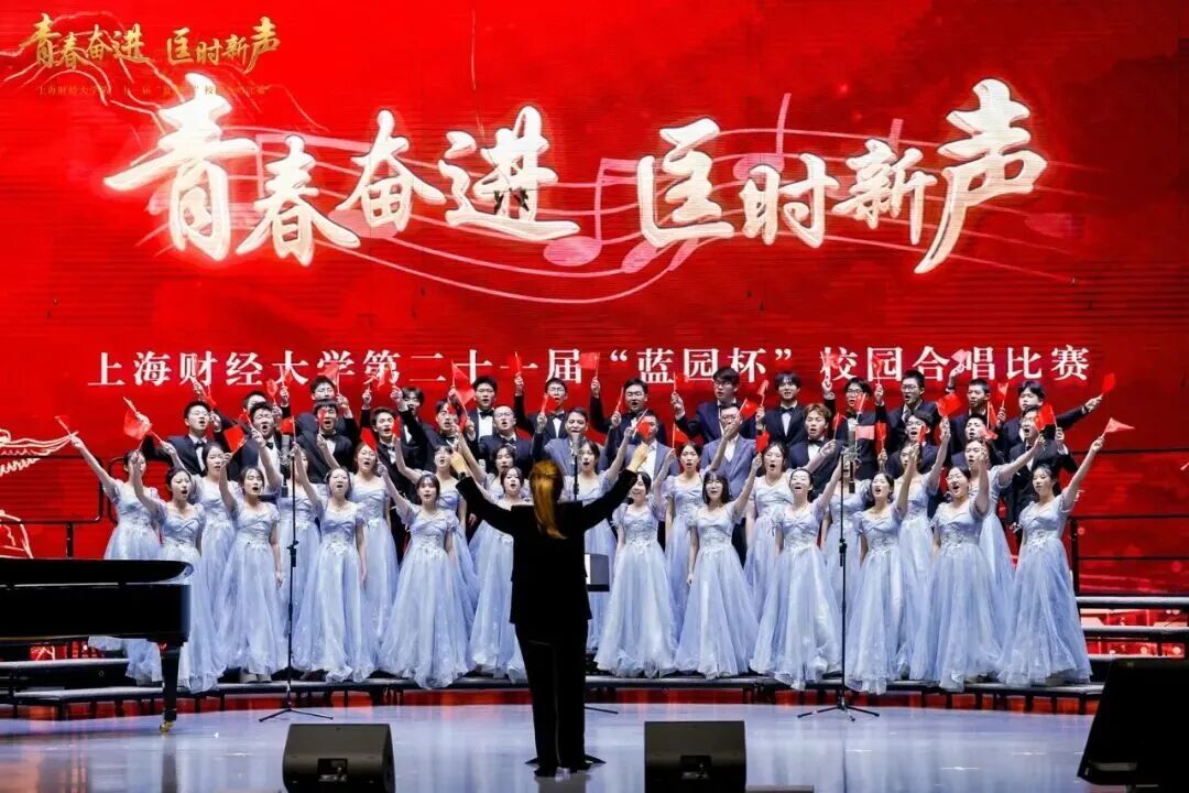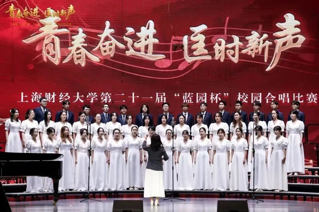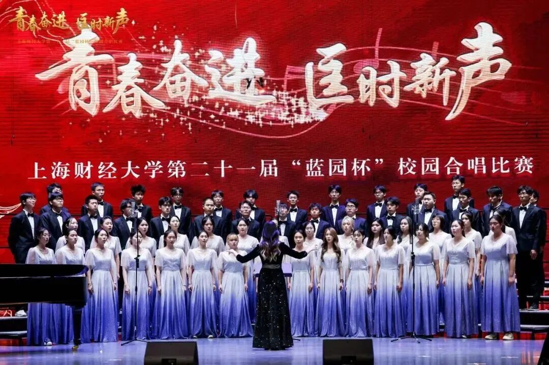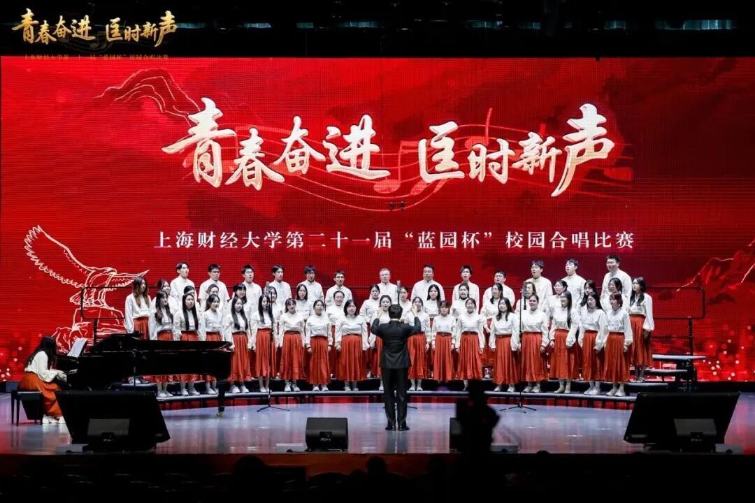 此次比赛在激昂的《歌唱祖国》音乐与全场师生的合唱中落下帷幕。 “蓝园杯”校园合唱比赛是上海财经大学思政育人与美育融合的生动缩影,红色旋律传承一二·九精神,艺术实践厚植家国情怀,既彰显了“五育并举”的育人成效,更让上财青年的青春之声与时代发展同频共振,为构建高质量育人体系注入奋进力量。