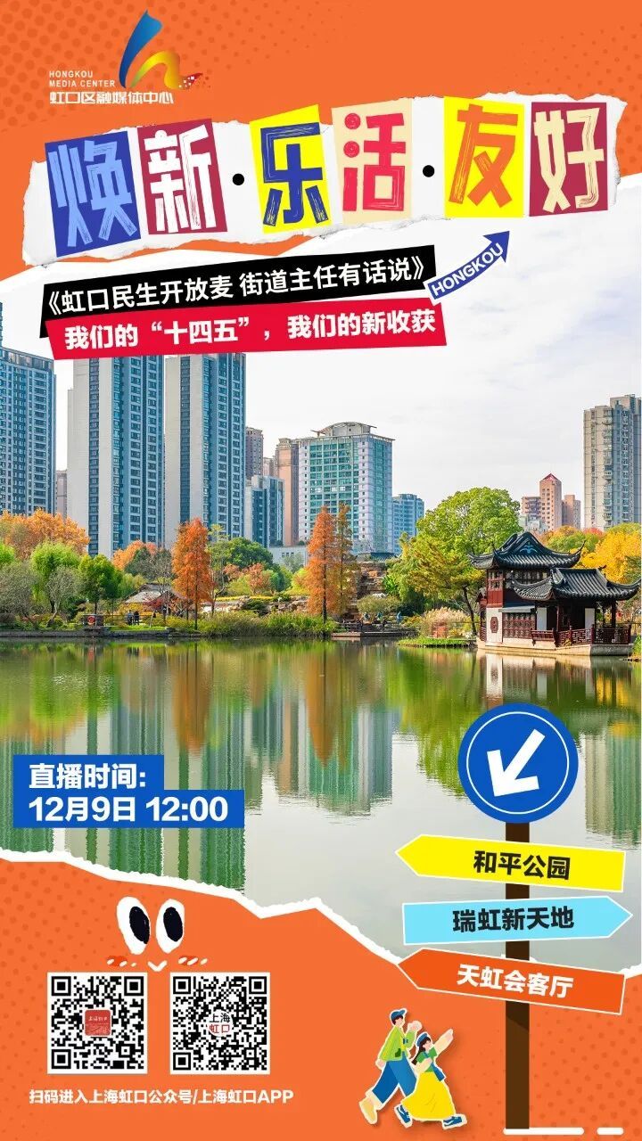 我们的“十四五”,我们的新收获。虹口区政府新闻办、虹口区融媒体中心推出在线访谈节目《虹口民生开放麦、街道主任有话说》。 “十四五”以来,嘉兴路街道深入践行人民城市理念,坚持以高质量党建统领推动高质量发展、创造高品质生活、实施高效能治理。第一期节目中,请来了嘉兴路街道党工委副书记、办事处主任薛俊全,通过焕新、乐活、友好这三个关键词,介绍嘉兴路街道如何满足居民对美好生活的新期盼。