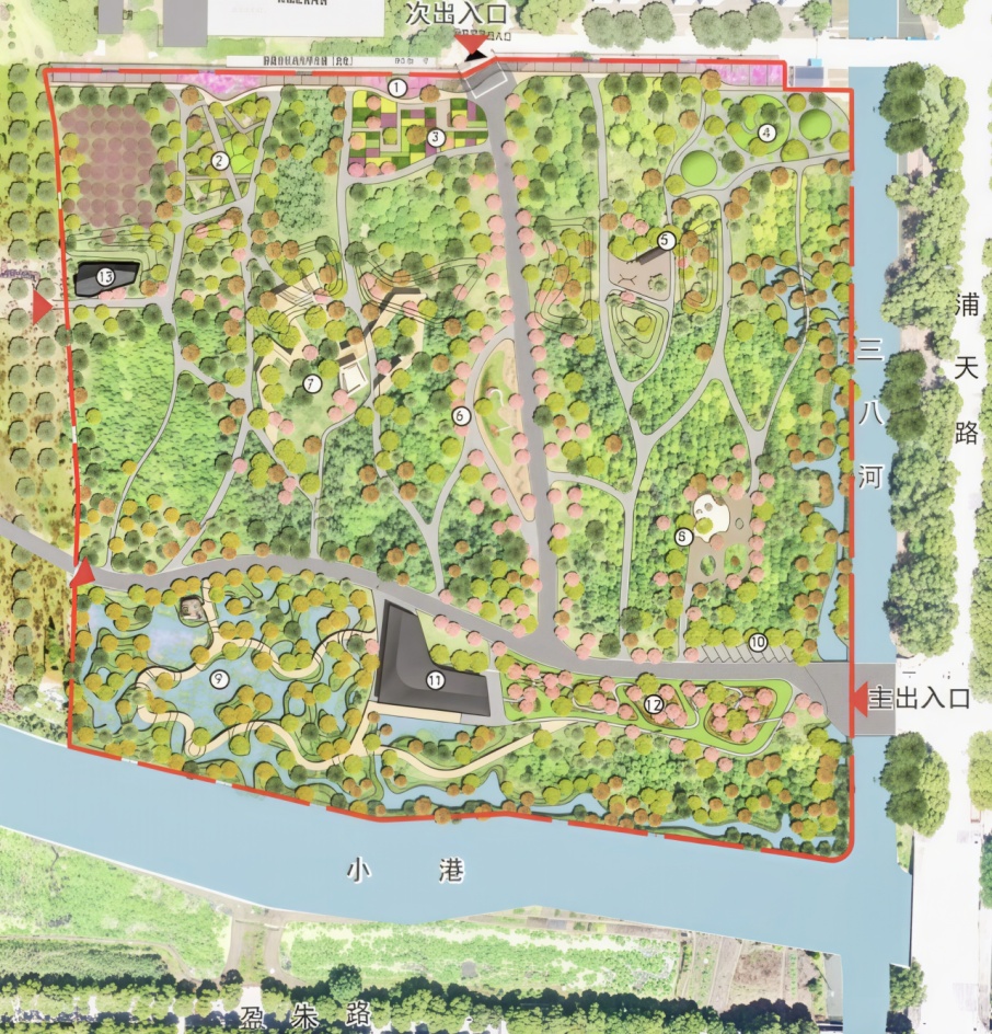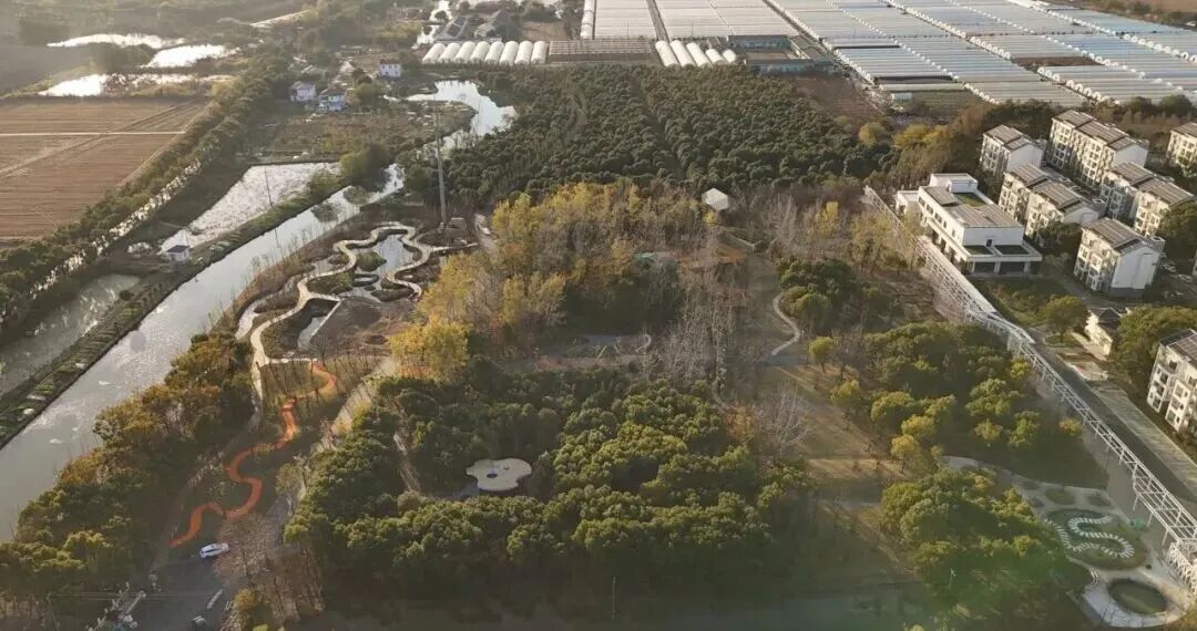 作为青浦新城绿环西侧的关键节点,盈珠园的选址藏着巧思:北侧紧邻天桥新苑居民区,南侧依傍小港市政河道,西侧衔接香樟林地,东侧与三八河、浦天路相邻,既扎根城市生活圈,又与自然肌理深度交融。作为绿环大师园系列中首座开工建设的代表性项目,它承载着特殊使命——探索城市开发边界处储备林地的生态转型,通过低养护、自循环的设计理念,重构草甸、湿地、密林等多样生境,让本土生物多样性在这里重新焕发生机。