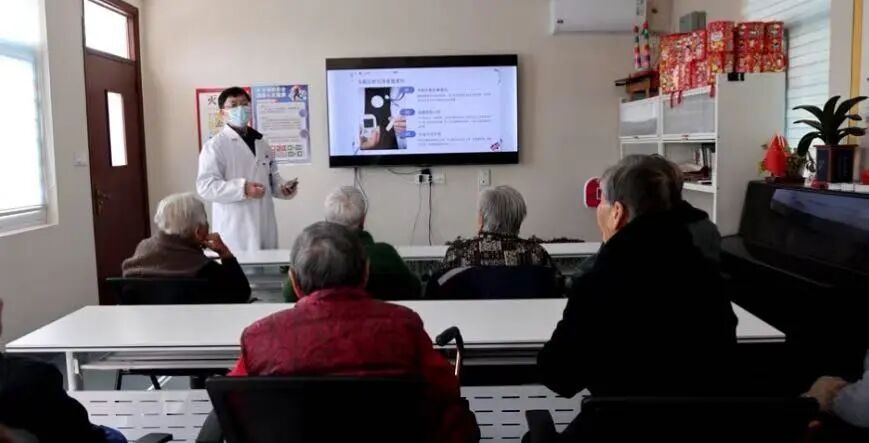 家庭医生服务点提供健康体检、咨询宣教、配药绿色通道等五大服务,每年一次的免费上门体检让行动不便的老人无需奔波;在有内设医疗机构的养老机构,家庭医生执业点叠加诊疗服务、业务培训等四大功能,与“养老院+互联网医院”形成互补,7家互联网医院与8家内设医疗机构共同织密“一站式”健康防护网。
