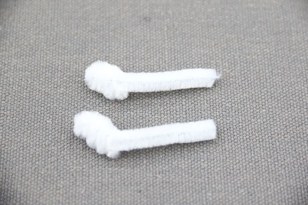 5.取白色的扭扭棒,剪成一根手指长短,在一段扭一个长椭圆作为小人的脚丫,重复做两个;