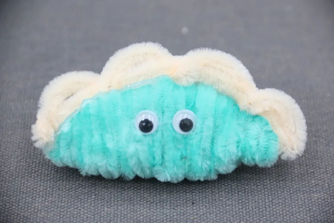 2.用同色的扭扭棒,围绕框架进行缠绕,缠绕过程中,在框架中间塞入纸巾进行填充;