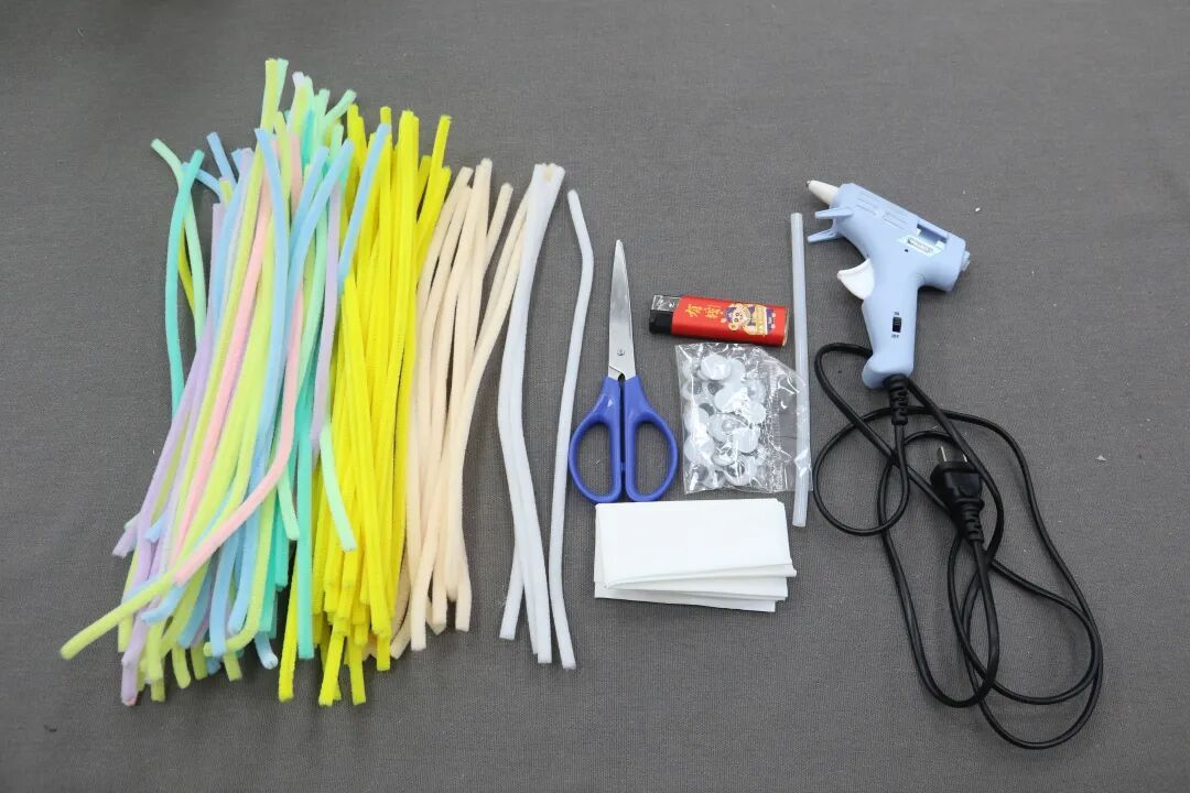 扭扭棒、剪刀、胶棒、胶枪、打火机、纸巾、卡通眼睛