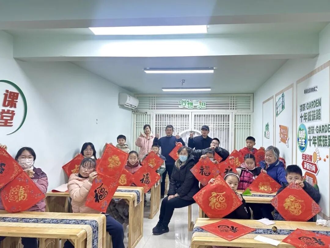 梅陇九村书法爱好者与凌云“小小志”志愿者现场写福