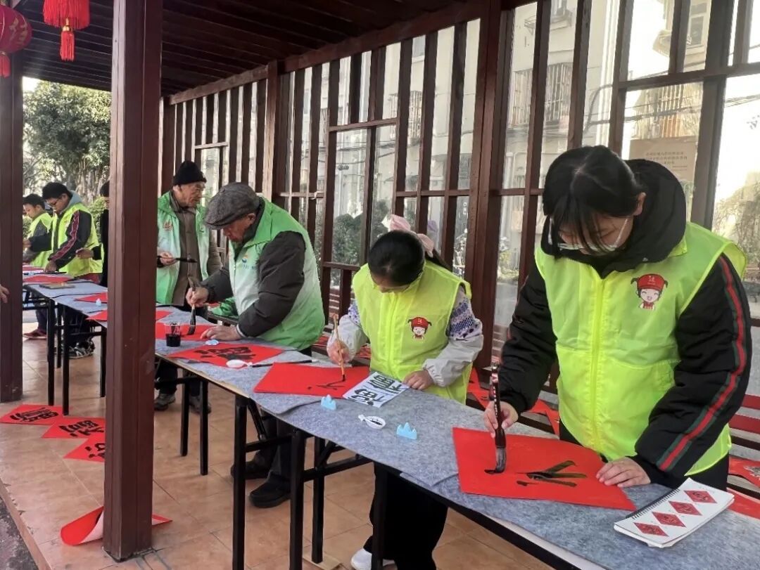 梅陇八村组织青少年写福字,老师手把手指导执笔运笔,孩子们将亲手书写的“福”字送到独居老人家中,笔墨传情,敬老暖心。梅陇九村汇集书法爱好者与凌云“小小志”志愿者,挥毫泼墨写下200余幅福字,居委干部还现场讲解贴福习俗,墨香萦绕间,居民们挑选心仪福字,感受传统文化魅力。