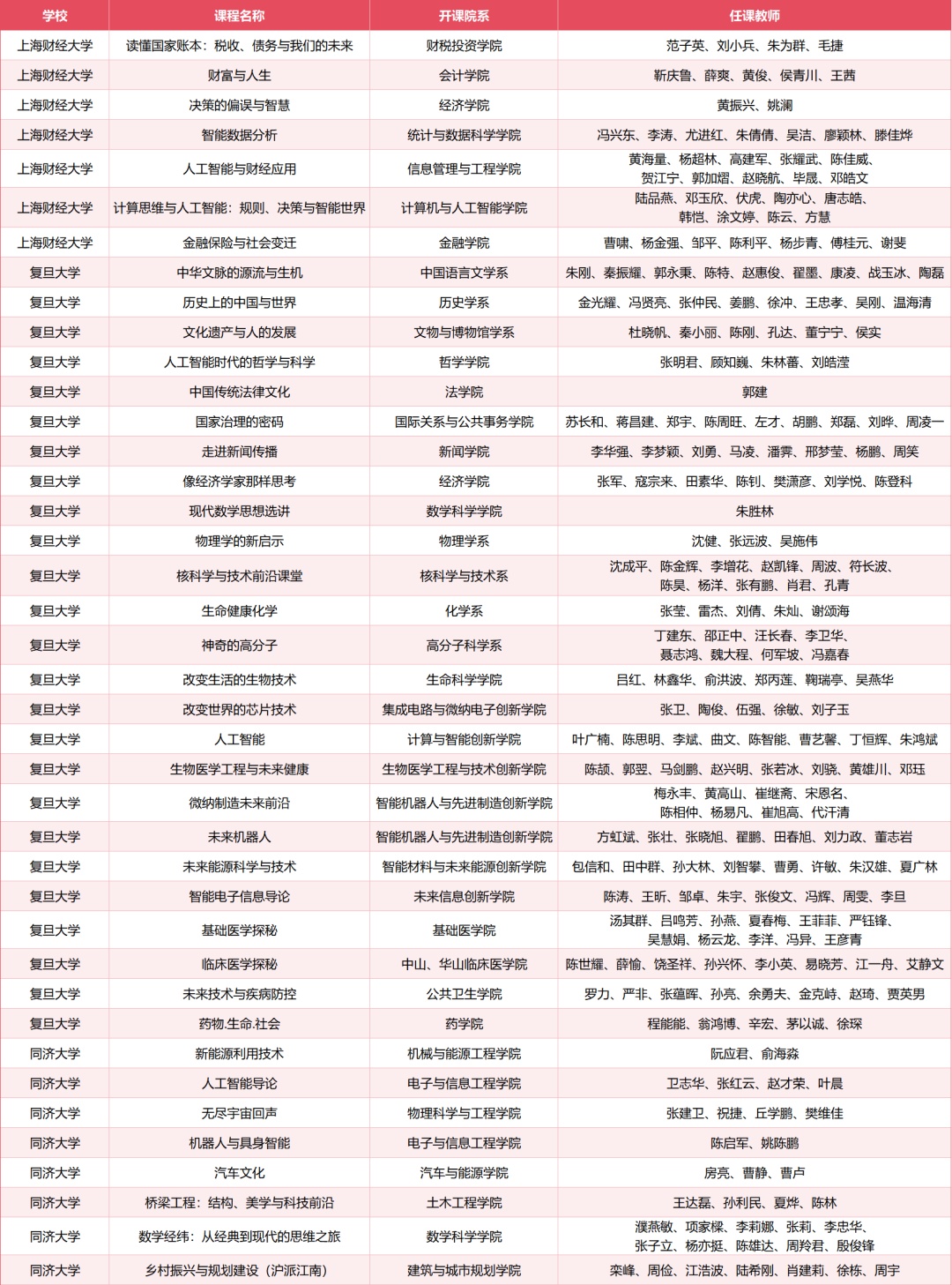 “周末先修学堂”2021年由复旦大学首创、面向上海高中生开设,历经五年匠心打磨,今年春天焕新启幕、重磅升级!今年上海财经大学与同济大学重磅加入,三校联袂打造的Pro 版周末学堂,共开设40门精品课程,可容纳约2500名同学。约250名大学教师倾情授课,更有院士、资深教授等顶尖名师坐镇。课程矩阵空前丰富,覆盖人文社科、自然科学、工程技术、数智财经等多维领域:你可以在上财读懂国家账本、洞察决策的智慧、体验人工智能与财经的融合应用,也可以在复旦探寻中华文脉、思考人工智能时代的哲学、揭秘芯片技术与未来机器人,也可以在同济深入体验桥梁工程的科技美学、领略无尽宇宙的回声、学习机器人与具身智能的发展。