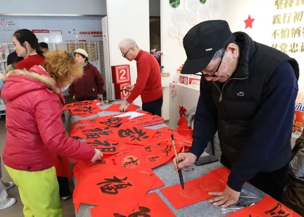 书法爱好者现场挥毫赠福