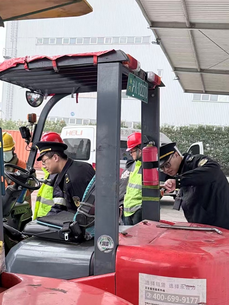 对洋山特殊综合保税区内重点企业开展节前特种设备安全专项检查。以电梯、压力容器、起重机械、场(厂)内专用机动车辆四大类设备为核心对象,着重排查设备登记、定期检验、人员持证、安全附件及应急预案落实情况,督促企业压实安全主体责任,针对安全隐患进行现场指导并督促整改,切实防范安全风险。