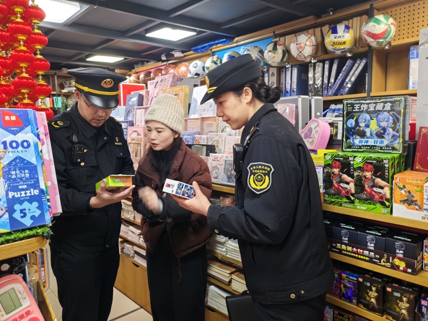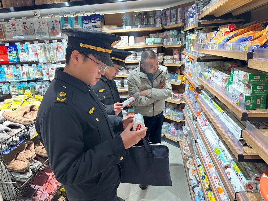 执法人员对辖区内商超、校园周边等重点场所的儿童用品、家用电器、食品等商品进行打击侵权假冒伪劣专项检查,重点核查产品标识、认证证书及进货来源。同步向经营者宣讲法规,督促落实主体责任。
