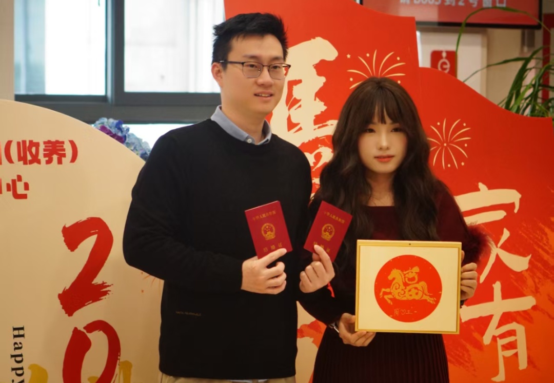 市婚登中心营造喜庆祥和氛围,全程一对一高效为新人提供优质服务,开展新年寄语赠马年公仔活动。