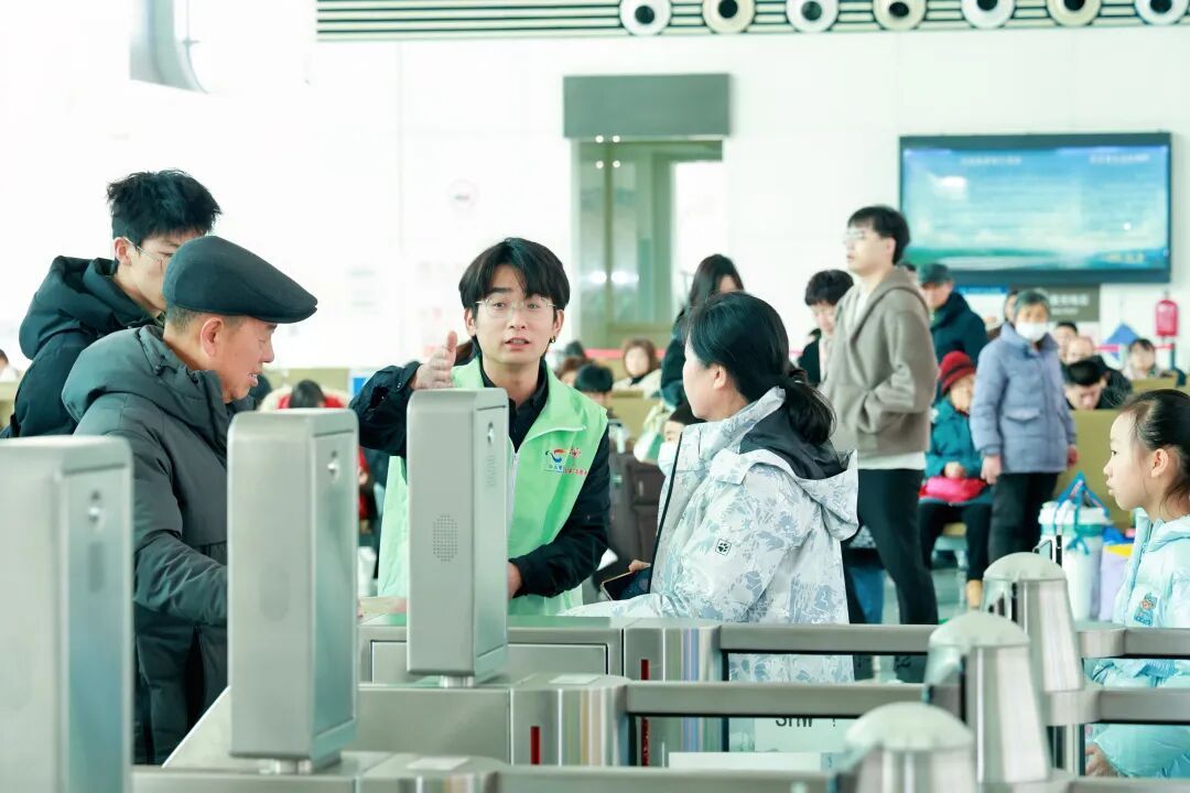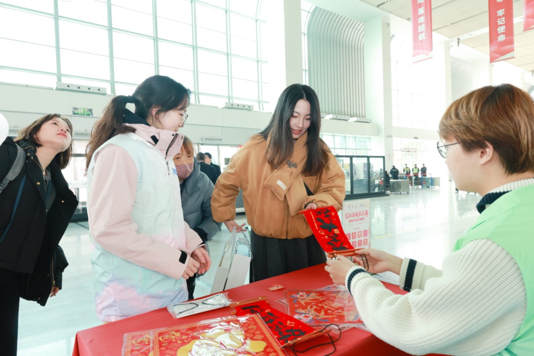 “这副对联送给您,是毛毡的,带回去可以挂在家里。” 2月13日,上海西站候车大厅内,大红灯笼映着来往人流,春运的节奏繁忙而有序。旅客李兰接过志愿者递上的烫金福字和毛毡对联,“非常意外还能收到这份‘年味’。” 这里不是年货展台,而是上海西站“家的温暖在上海”温暖春运志愿服务现场。由普陀区委社会工作部、普陀团区委、上海大学、上海西站等单位联合组成的志愿者队伍,把候车大厅一角布置成了“年味客厅”。服务台上,春联、福字、马年吉祥物摆得整整齐齐,暖宝宝、口罩、充电宝一应俱全,急救箱、应急工具整齐摆放;一侧的打卡背景板前,不时有旅客停下脚步,举起手机自拍。 “昨天有对在沪旅游的老夫妻在这儿拍了快十分钟。”志愿者张帅回忆,那对老人把照片马上发给女儿,“上海的年味都这么时髦。” 据悉,本次上海西站温暖春运志愿服务分为春节前和春节后,共持续12天,从早上8点到下午4点。普陀区整合辖区资源,精准对接旅客需求,在西站推出爱心送站、乘车引导、扶弱帮困、应急救助、信息咨询、秩序维护、安全巡查、便民服务八大志愿服务,全天候保障旅客出行。上海西站日均客流高峰接近2000人次,志愿者全员上岗,从安检口到检票口,全程帮忙提行李、指引路线。 “有人行李很多,但不好意思开口。”张帅说,“你需要主动服务。”今天上午,他护送一位在上海打工的大哥进站,三个大包一路送到检票口,大哥不善言辞,临进闸感激地挥了挥手。 20岁的蒋鑫宜是上海大学大一新生,她表示,和之前做志愿者不同,她更喜欢这里:“跟人打交道更多,跟乘客交流很多,很开心。”她身着浅绿色的志愿者马甲,在服务台旁耐心地和问询的旅客解答,还会手把手帮老年旅客操作自助取票机。 这抹“志愿红”并非春运专属。回望2025年,普陀区锚定志愿服务制度化、常态化、专业化发展方向,持续深耕“美美与共·蒲公英”品牌。从半马苏河公园的“乐游上海”活动,到上海环球港、长寿物贸大厦等楼宇一线的“‘律’护千企”法律服务;从市北燃气专业志愿者入户安检1.5万余户,到“3·5”学雷锋、进博会、“12·5”国际志愿者日主题活动的全城联动——普陀志愿者像蒲公英的种子,落进社区、楼宇、交通枢纽,在群众最需要的地方扎根。 “这边布置得喜庆、隆重,真有年味。”旅客赵资立说。他的身后,打卡点又排起了小队,旅客举着福字,对着镜头比出“耶”的手势。
