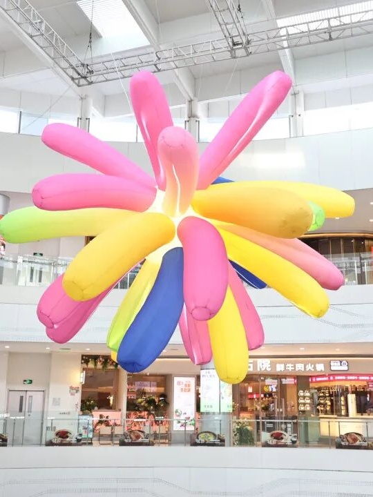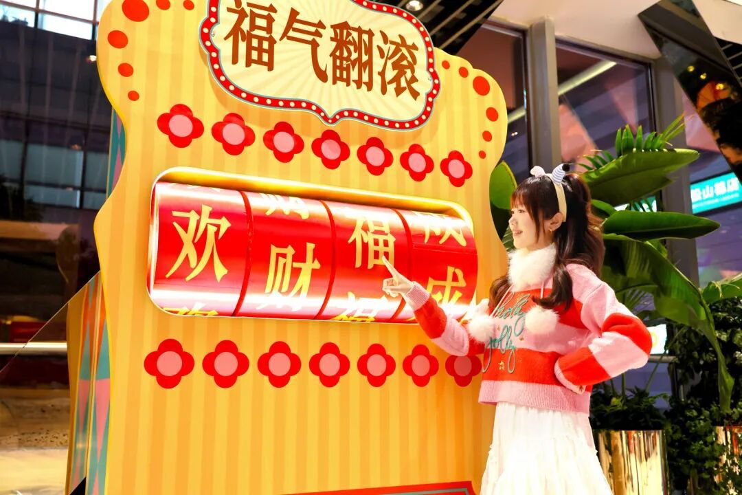 走进中里荟点,空中悬浮的金色球体与马年吉祥物构成了“财气滚滚”的梦幻景象。中里公共区域金灿灿的“薯条”倾泻成山,创意地谐音“马上数钱”,让新年的打卡照充满年味。北里大中庭,超大的 “烟花年年” 的流光充气装置悬在半空,璀璨绚烂。