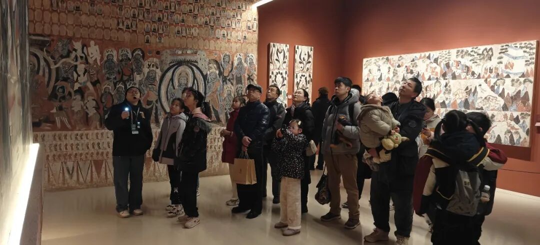 午后,亲子家庭齐聚敦煌艺术主题空间,开启了跨越千年的文化探秘。这里以莫高窟为核心,复刻呈现了洞窟艺术的千年精华,精美的壁画、绚丽的彩塑,让在场亲子无不叹为观止。在专业讲解的引导下,孩子们认真聆听壁画背后的历史传说与文化故事,近距离感受敦煌艺术的精湛绝伦,在沉浸式体验中读懂中华优秀传统文化的博大精深。