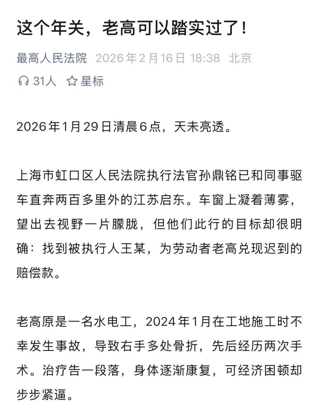 转机出现在2026年开年。一天,老高急切地打来电话:“孙法官,我打听到了!王某就在江苏启东,在那边一个工地干活嘞!”