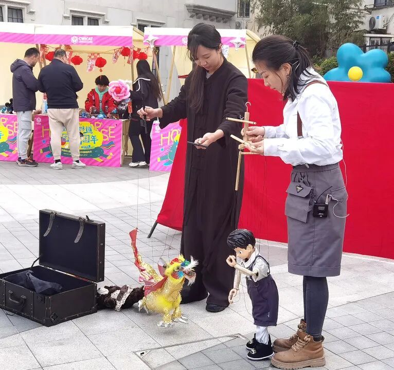 曾亮相阿那亚戏剧节、上海外滩,深受大众喜爱的龙形装置艺术——“小玩具龙”也加入游园会,既是亲子打卡合影的绝佳背景,也为大小朋友们送上“在新的一年里,龙马精神、奋发有为,在欢声笑语中开启全新征程”的美好祝福。据悉,造型喜庆又充满奇幻童话风格,“肚子”里还陈列有小朋友们带来的各式玩具的“小玩具龙”将正式入驻中福会儿艺剧院。
