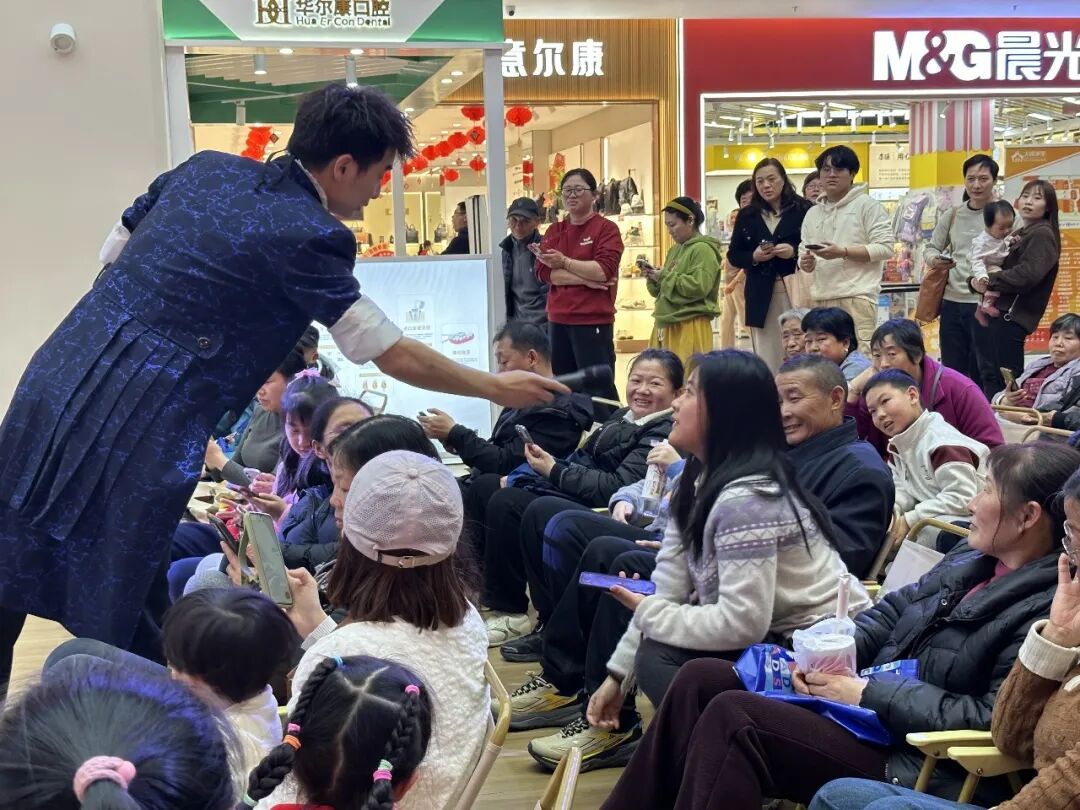 萨克斯吹奏起耳熟能详的经典旋律,柔美婉约的古典舞与幽默逗趣的滑稽戏次第登台,将现场气氛推向高潮。最受欢迎的当数春晚同款魔术《惊喜定格》,魔术师邀请台下观众共同参与,再现了今年央视春晚经典桥段,引得现场掌声雷动。