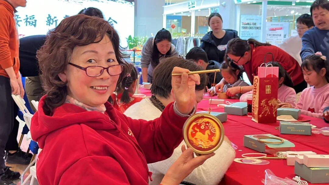 舞台之外,新春集市同样人气爆棚:家长带着孩子扎花灯,将新一年的美好祝愿藏进红彤彤的灯笼里;市民争相挑战“转盘答题”“欢乐套圈”等游戏,在趣味问答中将春节传统民俗与文明新风深植于心;大伙儿还体验了非遗拓印技艺,将带有马年元素的吉祥图案印在红纸上,把这份独一无二的“年味”带回家。