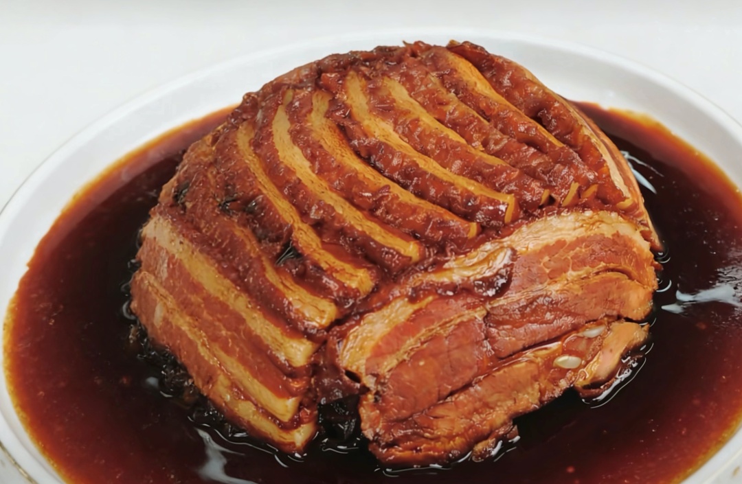 其实,对于真正了解老八样的上海人来说,一道美味从不在食材多贵,而在功夫够深、心意够足。就拿珑妈正在做的走油肉来说,工序烦琐到容不得半点马虎:大块五花肉或蹄髈,先慢火煮足一个半小时,煮到筷子能轻松戳透;捞起沥干,再下入滚烫的油锅,炸上十几分钟,直到表皮金黄起泡;炸好的肉必须立刻浸入冷水,泡上四五个小时,才能逼出漂亮又软糯的虎皮纹;最后加酱油、冰糖红烧入味,若是蹄髈,拆骨蒸制,便是宴席上人人争抢的“扣蹄”。
