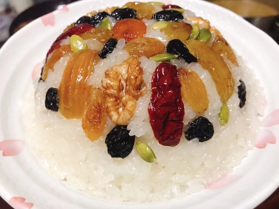 她有位闺蜜住在农村,2020年翻新楼房时,特意保留了一口可移动的土灶。在珑妈心里,正宗的菜饭,就得用土灶烧才够香。每年过年前,闺蜜都会早早张罗,和她一起做走油肉,再分给家人朋友。除了招牌走油肉,软糯香甜的八宝饭,从熬猪油开始,每一步都亲手制作,满是诚意。