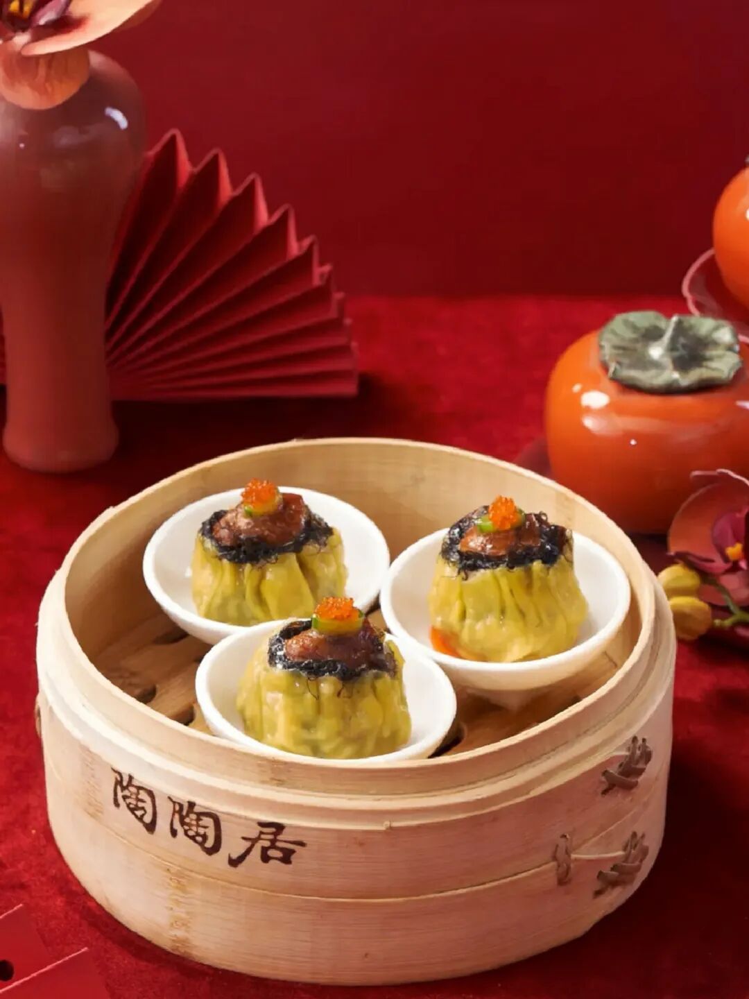 “发财好事迎福烧卖”则沿用广式经典贺年搭配——金蚝与发菜,谐音“好市发财”,入口甘香鲜美,寓意新年财源广进。
