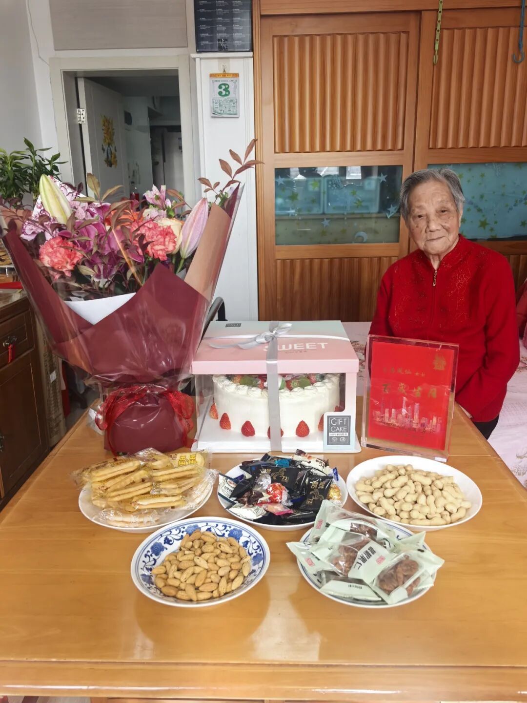 陈毓祥不便参与庆生活动,居委会老龄干部始终牵挂着老人的百岁寿辰,提前与老人家属取得联系,将生日蛋糕、慰问品专门交由家属带回。“感谢居委会一直惦记着老人,这份祝福太让人暖心了!”家属接过蛋糕与慰问品时十分感动。