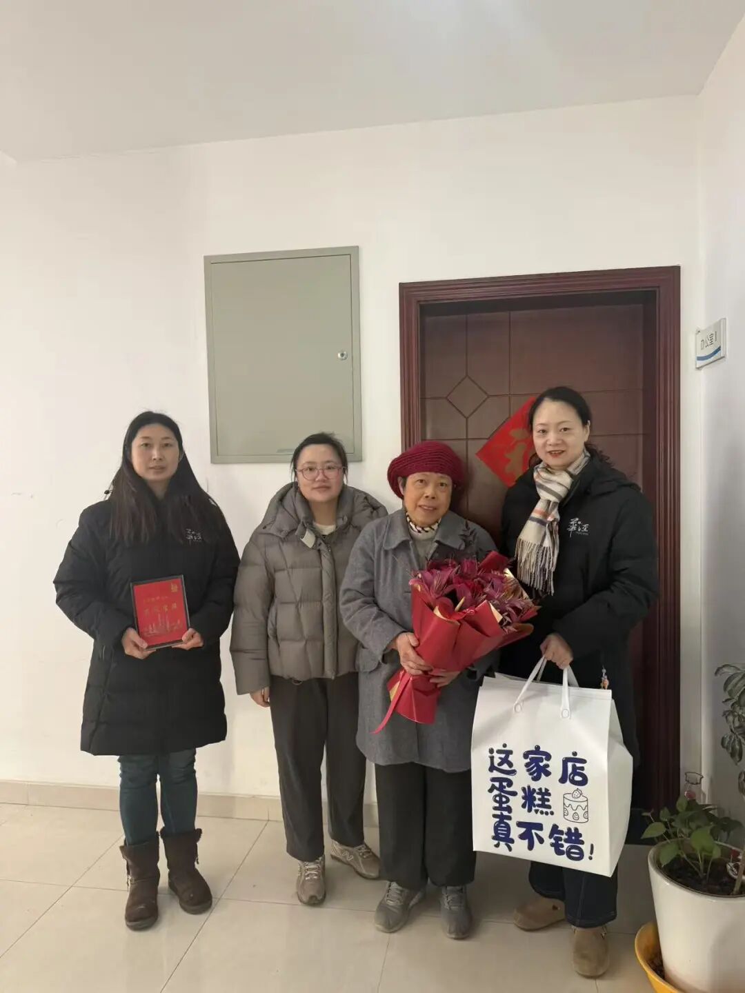 日前,华泾镇服务办、建华门户片区相关负责人一同前来华建社区为马凤仙庆祝生日,并为其送上了鲜花、生日蛋糕、水晶牌,带去了镇党委、政府的真切祝福。