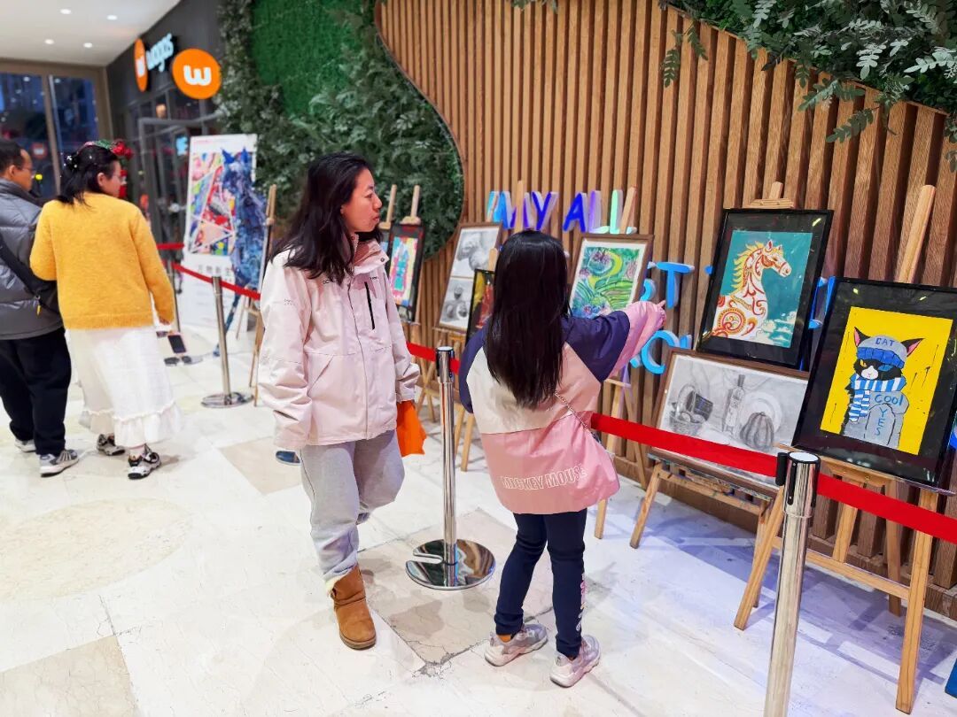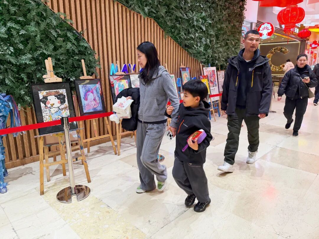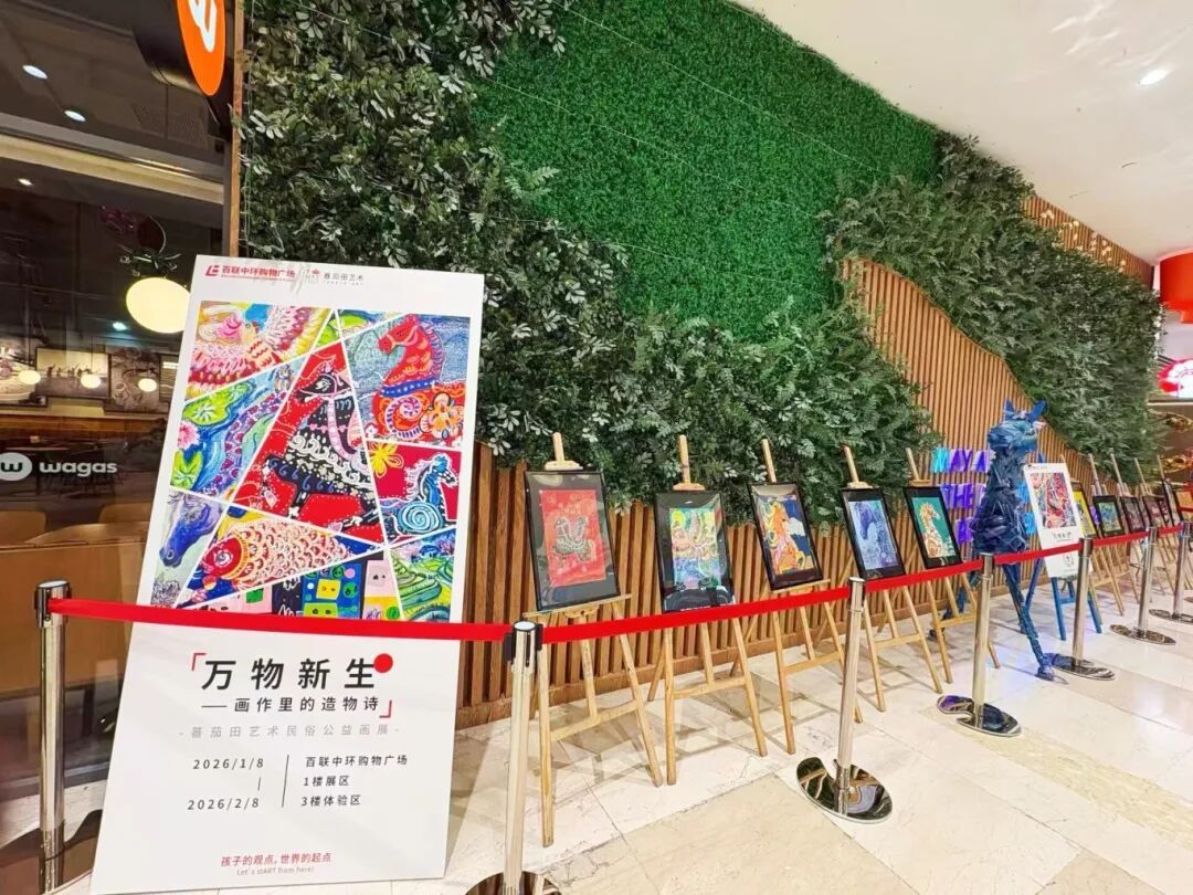 新春假期,百联中环购物广场新增一处便民看展选择——“万物新生”公益画展,于商场一楼展出,展览将持续至2月28日,无需远行,市民在家门口便可邂逅一场融合传统与创新的艺术盛宴,在年味中感受艺术魅力。 市民驻足观展 本次展览聚焦“以多元艺术语言,描绘自然生灵,人造物象与文化想象”这一核心,涵盖多种艺术形式,从灵动的现代动物漫画到雅致的传统生肖水墨,从充满童趣的建筑画作到承载底蕴的民俗文化作品,创作者以多维视角,展现了从现实到幻想、从传统到创新的艺术表达力,让不同风格的作品在此碰撞融合。 展览深度融合马年新春气象与艺术创作核心,围绕“万物”“新生”“画作里的造物诗”三大关键词展开,让艺术作品更具年味与温度。其中,“万物”是作品的核心载体,画作中,猫、狗、兔等可爱生灵以漫画形式呈现,马、蛇等生肖形象搭配百鸟、鱼灯等祥瑞符号,再加上山水、房屋、青花瓷纹样等元素,完整勾勒出创作者笔下的“万象世界”,鲜活又贴近生活。 市民驻足观展 “新生”则是展览的精神内核,既契合新年时序更新的美好寓意,也体现在作品对传统元素的创造性转化中。无论是将传统生肖、山水意象进行现代表达,还是让青花瓷、鱼灯等传统符号获得创意新生,抑或是将童趣满满的“小房子”描绘成“不倒的高楼”,每一处创作都充满活力,比单纯的“新”更具生命力与成长感,彰显出传统与创新的碰撞之美。 这场展览更是一幅“画作里的造物诗”,作品中巧妙融入民俗IP故事、生灵百态、百鸟朝凤等祥瑞意象,以及寄托着人们对家园的美好愿景,既有着深厚的文化根基,又充满亲切感。这里的“造物诗”,便是创作者从描绘万物、建构家园到再造文化的完整艺术过程,每一幅作品都藏着对生活与文化的热爱。 展览现场 作为普陀区新春消费的重要阵地,百联中环将艺术展览与新春氛围深度融合,打造“文旅商体展”融合的新春体验,市民在逛商场、享福利的同时,可免费驻足观展,在多元画作中感受新春气息与艺术魅力,为春节假期增添一抹独特的文化暖意。