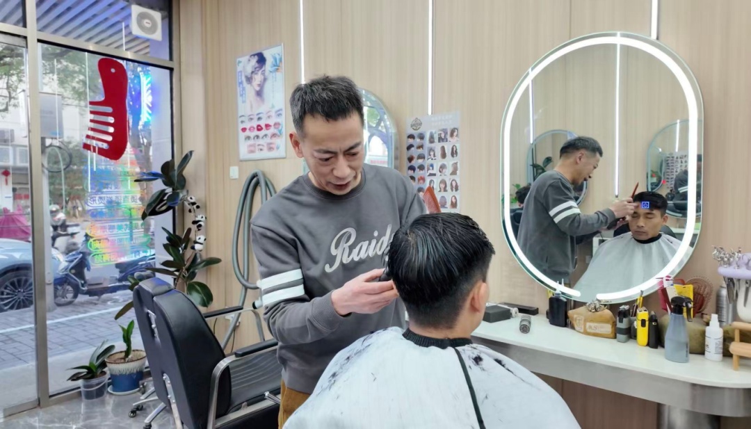△王念超为顾客理发