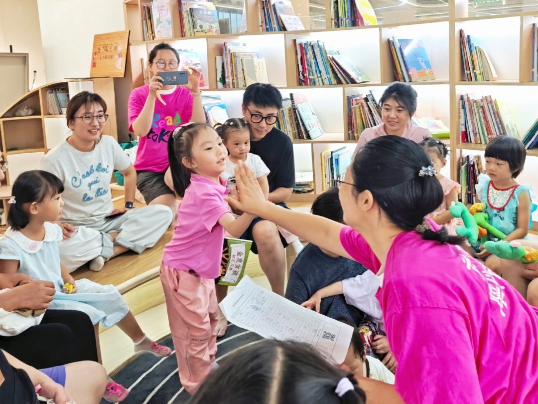 一个月后,经过系统培训,龚明昱的大女儿迎来了正式上岗的日子。那天小女孩兴奋不已,用生动活泼的语言演绎着图画书中的每个动物角色,那份投入与热爱,瞬间抓住了小朋友和家长的心,咯咯的笑声此起彼伏。