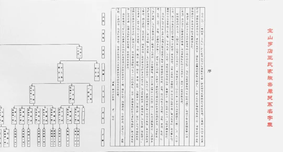 王 2022年,我花了四五个月走访父亲家族长辈,整理出《宝山罗店王氏家族亲属关系名字表》,理清了六代人的辈分、分支脉络,还自己写了前言和序,印了一百多份分给各家。罗店王家是大家族,老辈取名讲究辈分字,我是第六代“诚”字辈,父亲是“必”字辈。现在讲文化传承,提倡家风家规,鼓励大家续家谱,“找根”就是很重要的一部分。做这个得有耐心,还得愿意花时间。