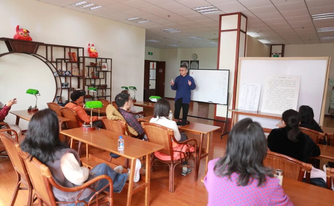 活动伊始,张伟以通俗生动的语言,为现场学员讲述了杨氏太极拳85式的百年传承脉络。从杨澄甫宗师定型的“杨家太极大架”经典范式,到这套拳法融合道家阴阳学说、儒家中庸思想与中医经络理论的文化内核,再到其在国内外的传播与发展,张伟的讲解让大家对这项非遗技艺有了更深刻的认知。他特别提到,杨氏太极85式的“以意导气、以气催形”,恰是契合当代人身心需求的核心,为后续的沉浸式体验打下了扎实的理论基础。