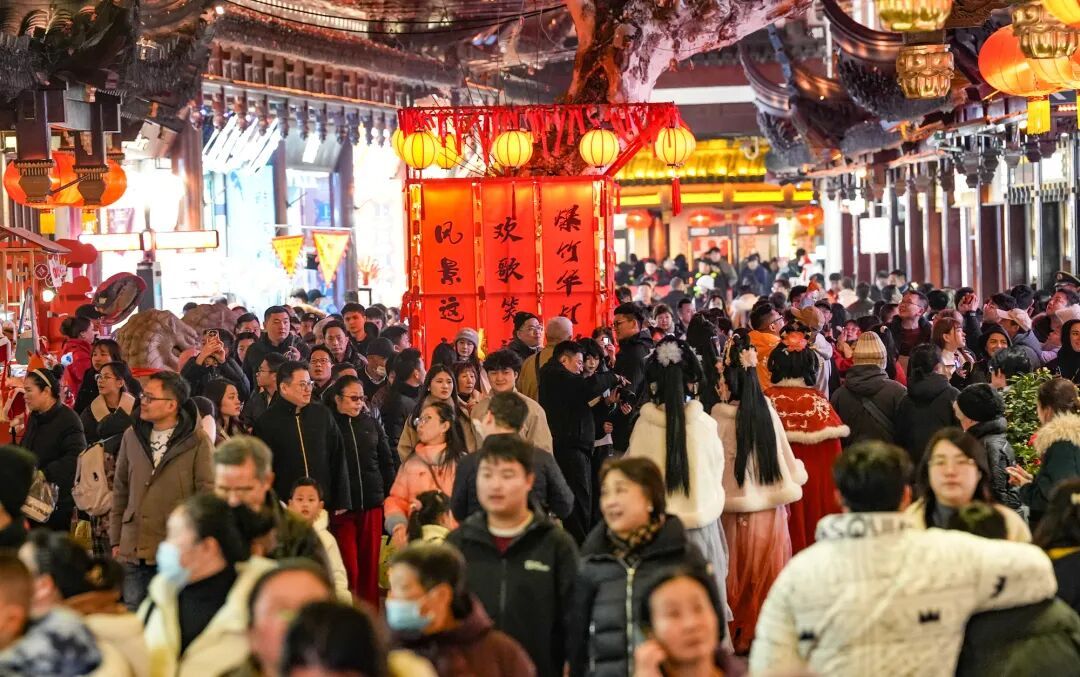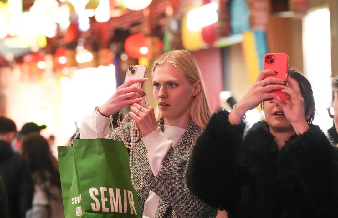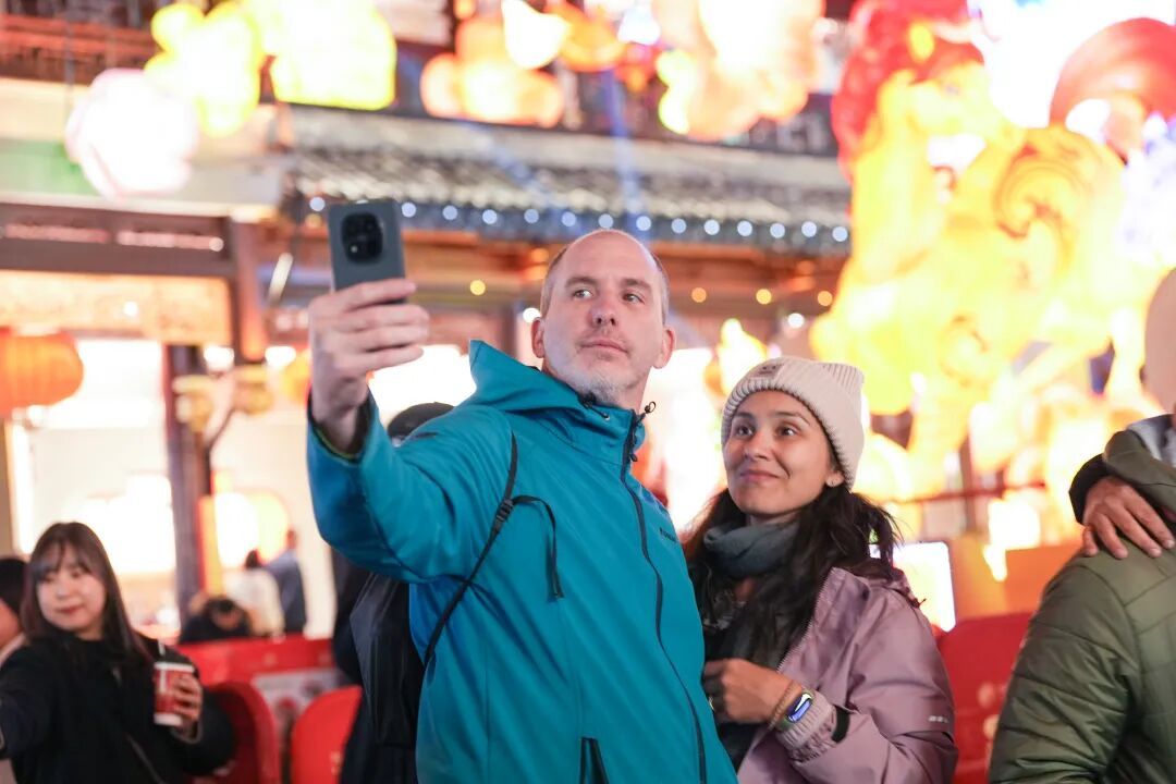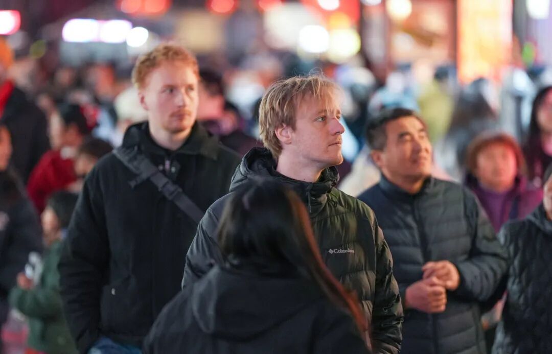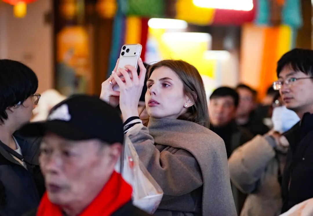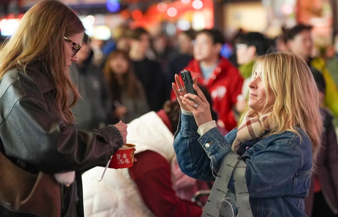 这两位外国姑娘举着刚买来的冰糖葫芦,