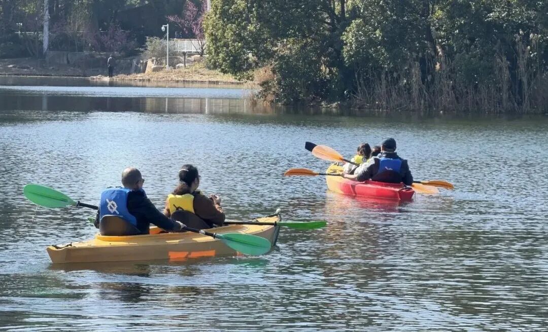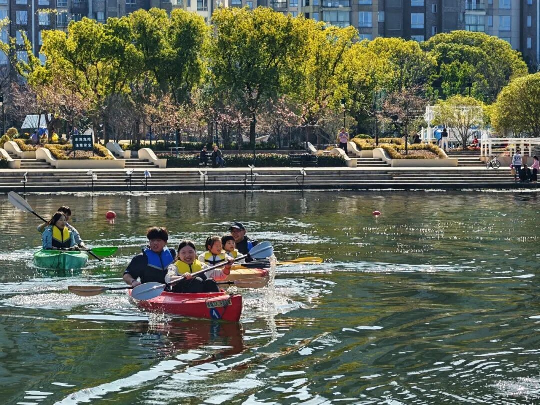 碧波划行,荡漾新春生机。活动现场,在专业教练的悉心指导下,市民们有序登船。随着船桨轻摇,一艘艘皮划艇在公园的清澈水面上悠然穿行,激起阵阵涟漪,为新春佳节增添了动感与活力。