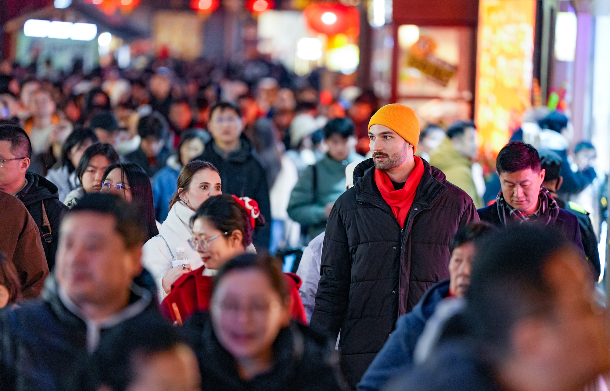 春节长假的豫园,仿佛成了联合国总部开会现场。放眼望去,满眼都是金发碧眼,耳边传来各国语言交织的“好漂亮”。这里不只有花灯,更有一场关于“好奇”与“满足”的全球表情大赏。