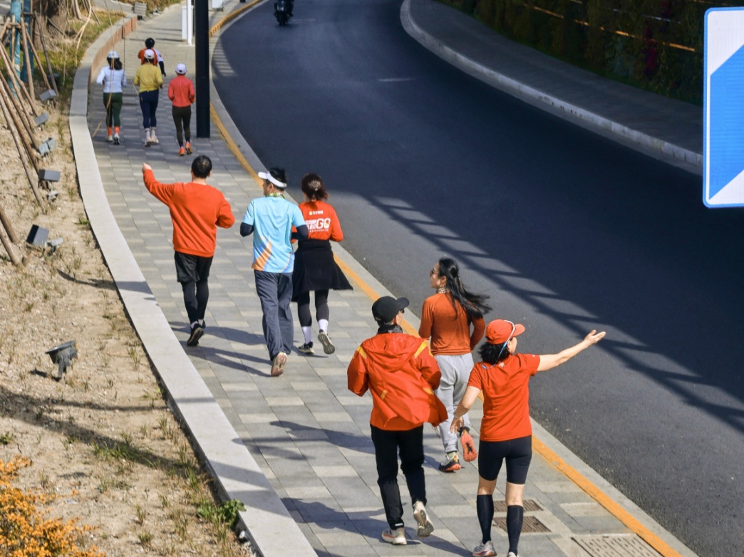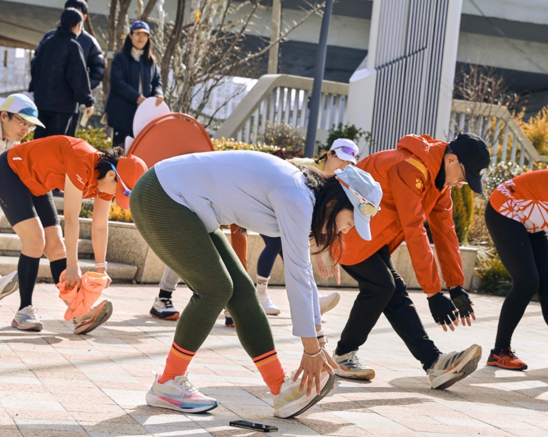 专业教练团队穿梭于跑者之间,从热身拉伸到配速控制,手把手进行科学指导。“主要是帮大家规避运动损伤,特别是针对不同水平的跑者调整发力技巧,为比赛筑牢基础。”教练张晓瑜表示。