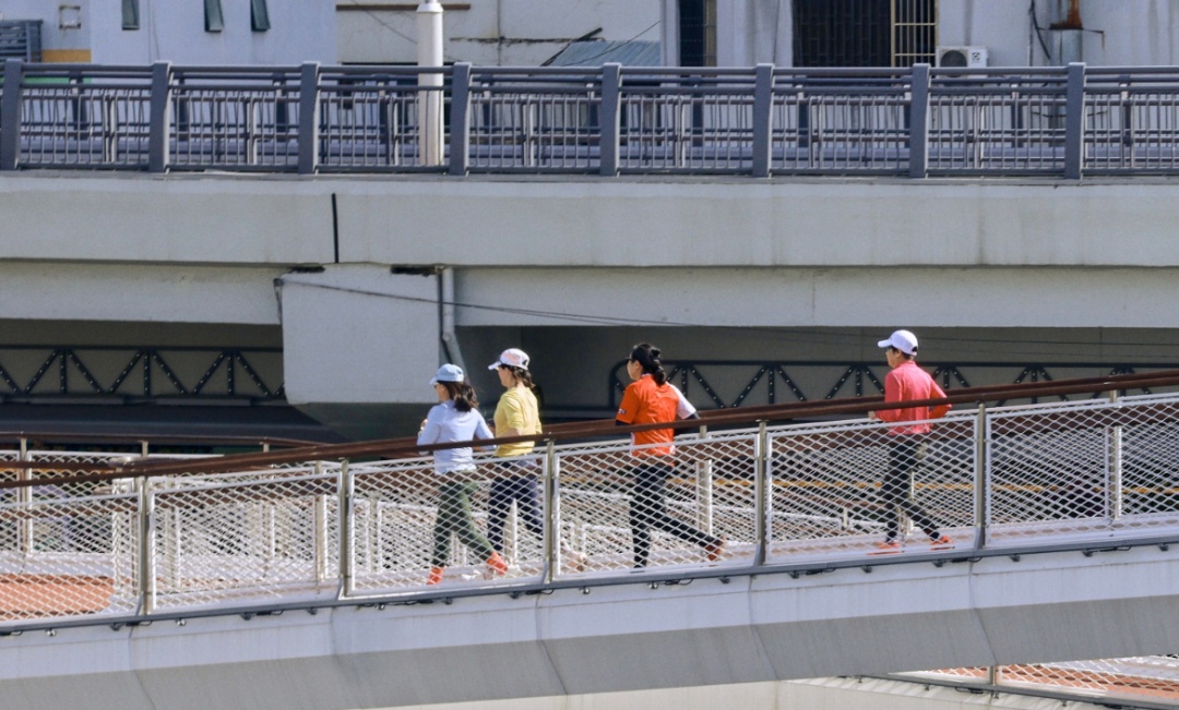 早上9点,普陀苏州河沿岸步道已是一片热气腾腾。作为跑圈公认的“跑步圣地”,这段精心设计的赛道与今年3月即将举行的苏州河半程马拉松赛道高度契合,吸引了数名跑者在此“以练备赛”。人群中,既有步履矫健的资深“老马”,也有眼神略带紧张的新手。