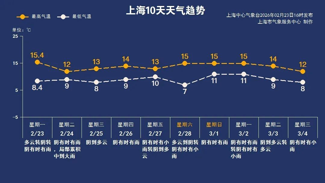 本周雨多晴少,除周三以外,都有雨相伴,比较明显的降水时段在周四和周日,请大家随身携带雨具。气温起伏不大,最高气温在12℃-15℃之间,最低气温7℃-11℃,体感偏阴冷,防寒保暖不能松懈。