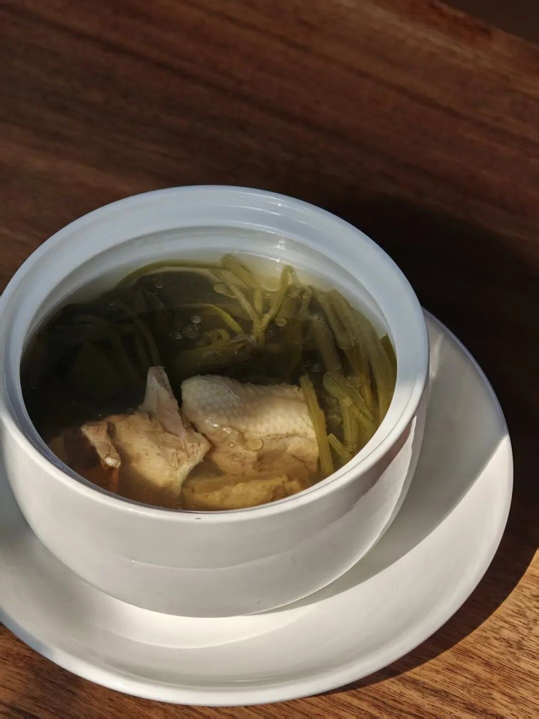 经年腌制的罗汉菜在汤中舒展,吸饱鸭油的润泽,入口微苦,旋即回甘。那股清奇的陈香不夺肉之本味,反将肉香提至更悠长的境界。