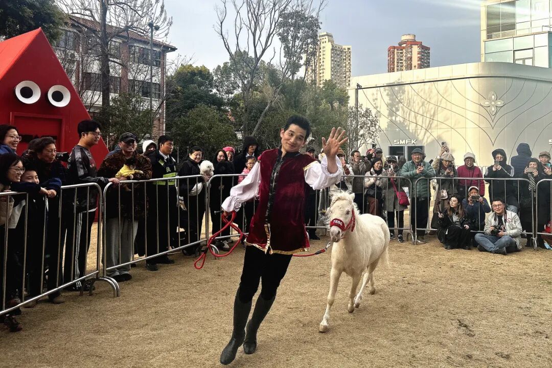 2月23日,静安区“策马迎新,邂逅静安——奔马戏春风”商圈春节演艺快闪活动最后一站来到永源路街区,舍特兰小矮马与上海杂技团·欢乐马戏的青年演员陪伴市民游客为马年春节假期画上圆满句号。