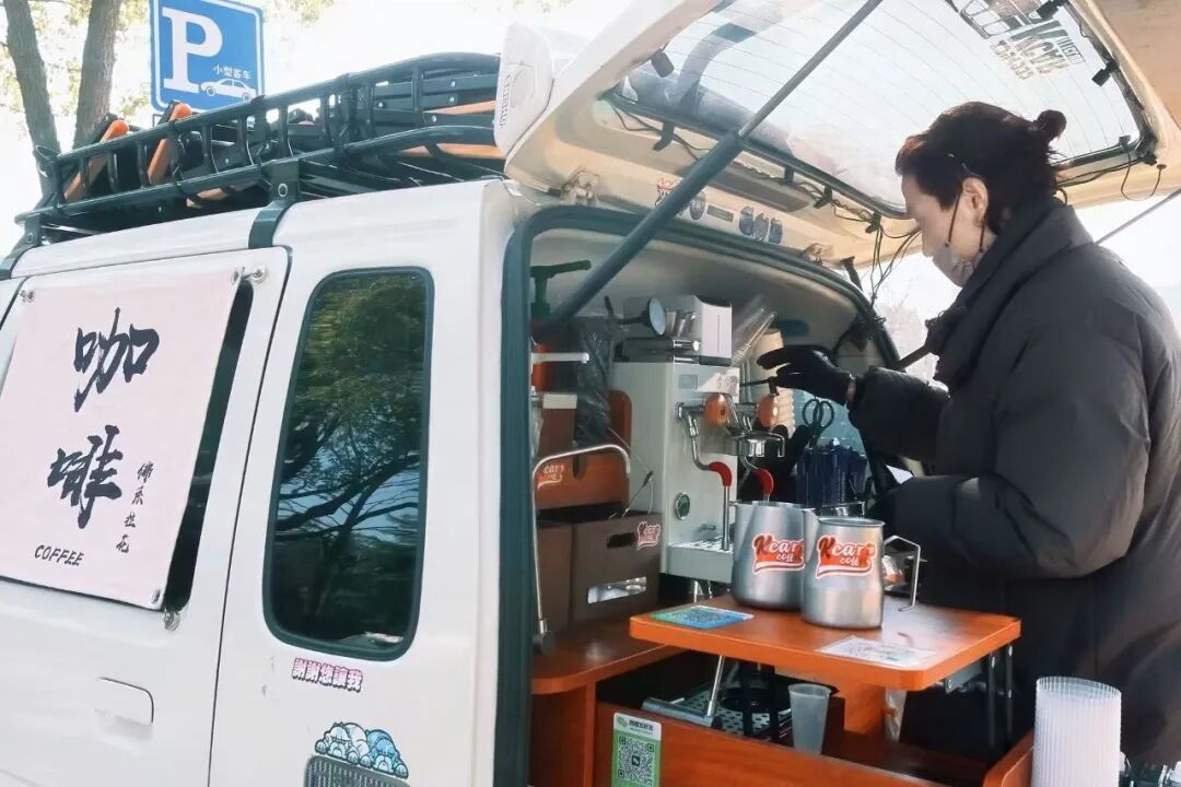 心动场景:一辆白色咖啡车,停在路边树下。后备箱里藏着整座移动咖啡馆,两杯拿铁在手,看河水慢慢流。没有固定的座位,却有整片树荫和微风。