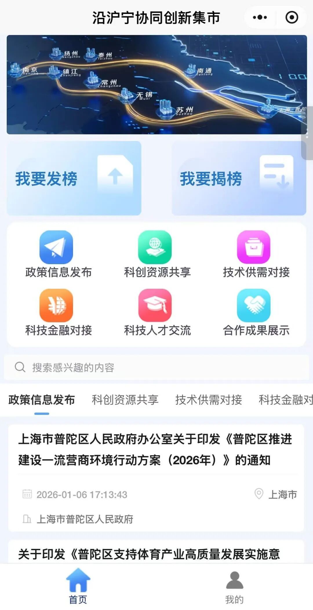 线上“创新集市”:一键速配,破解对接难题。针对高校院所与企业间长期存在的“技术难对接、需求难匹配”痛点,开发运营“沿沪宁协同创新集市”微信小程序,汇聚展示沿线高校、科研院所的科技成果、专利资源以及企业的技术攻关、工艺改进等需求,推动供需对接与匹配,降低搜寻成本与对接门槛。