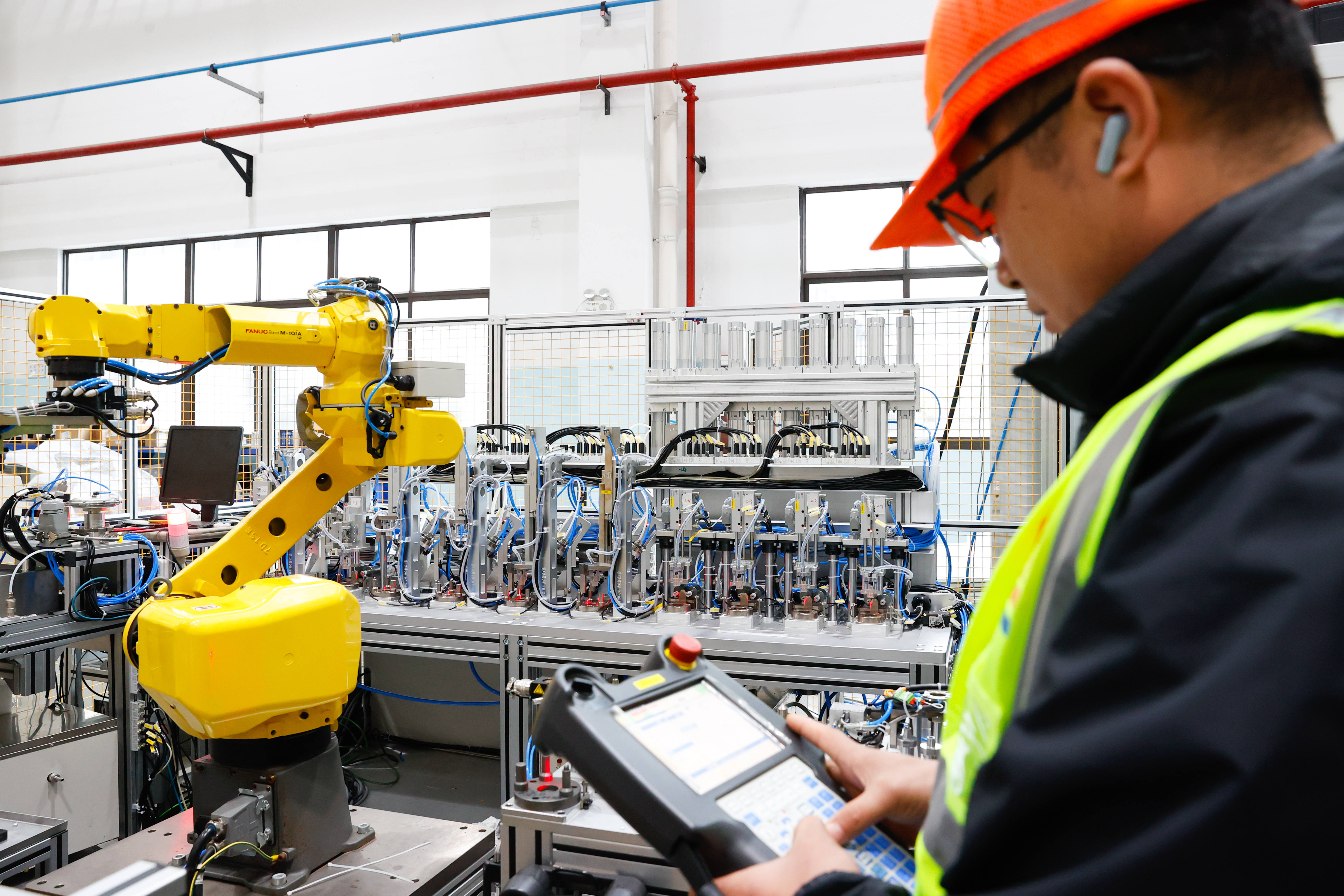 伟本智能机电(上海)股份有限公司位于松江经开区,主营以工业机器人应用、数字化软件技术和定制化硬件开发为基础的自动化和智能化工程系统集成,提供数字化工程、智能物流工程、自动化工程和智能运维服务。马年春节后首个工作日,企业恢复生产,技术人员抓紧调试设备,各条产线高速运转。记者 高雨 摄
