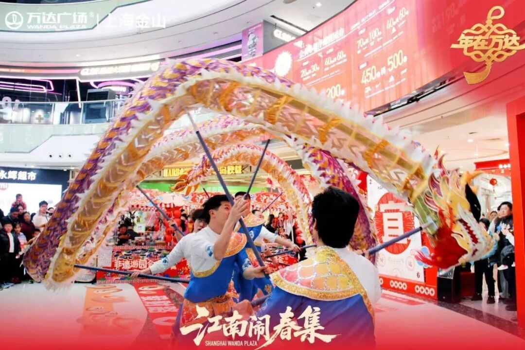 除了景区景点人气高涨,春节期间金山的商圈消费同样表现亮眼。金山万达广场紧扣新春氛围,推出“非遗过大年”特色主题活动,商场内外处处洋溢非遗元素。从除夕至正月初七,金山万达特邀非遗代表性传承人现场授课、互动体验,让市民游客近距离感受非遗文化魅力。商场还推出多重新春优惠促销活动,进一步激活节日消费潜力。