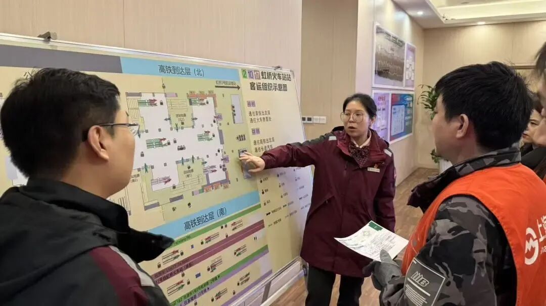 节前,虹桥火车站站与“小煜流星轮”服务团队提前启动春运志愿者招募,联动“青小运”“青小律”“华山医院门诊党支部”三支专业团队,开展“暖冬春运”志愿活动。“小煜流星轮”服务团队为志愿者们开展线上岗前培训,并配发岗位提示卡,确保以专业姿态迎接八方来客。