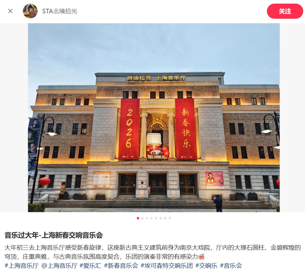 为了让更多无法亲临现场的乐迷感受到新春氛围,“云音乐厅”新春特辑也在春节期间如期上线。精选的8段名家音乐会实况片段,让海内外观众在“云端”与上海音乐厅同频共振,真正实现了“文化无界、年味共享” 。