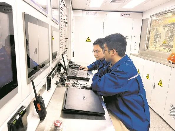 今年上半年,“锡望号”将启程沿长江入太湖运抵无锡,服役于国内首条穿太湖超大直径盾构隧道工程——无锡至宜兴城际轨道交通工程(S2线)穿湖盾构施工。在盾构机主控室,隧道股份上海隧道城建装备设计研究院副院长秦元和“00后”信息化技术员徐傲正在为“锡望号”搭载的智能化设备进行调试。