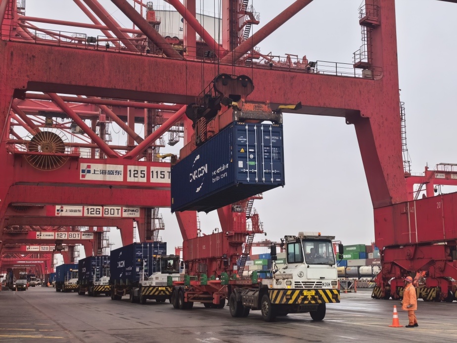 继1月进出洋山口岸的船量创下单月历史新高后,整个2月的船量依然处于高位状态,9天春节长假,港口一刻不停,洋山港全港集装箱吞吐量达76万标箱,码头泊位的利用率和周转率均处于高位水平。这份忙碌也延续到了节后开工首日,呈现一马当先的开局势头。